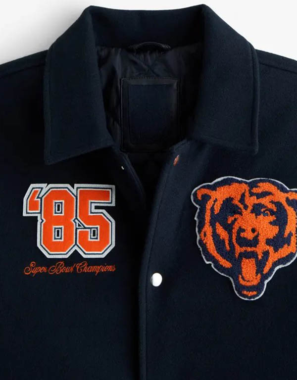 This jacket has casual sophistication, perfect for game days or everyday wear. Its ultimate appeal lies in blending vintage charm with modern aesthetics, making it a must-have for Bears fans.