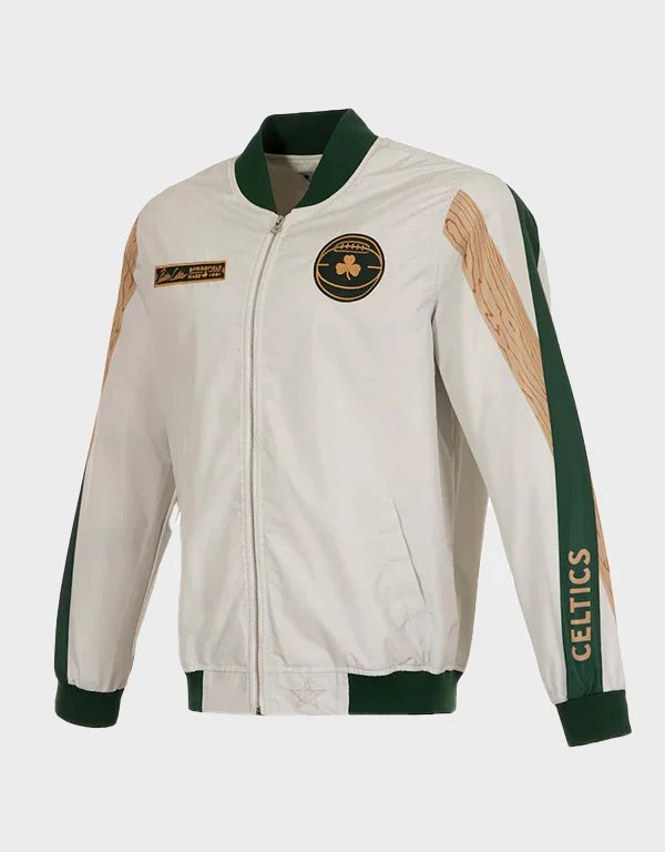 Boston Celtics Cream Full-Zip Bomber Jacket