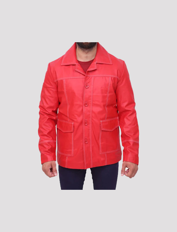 Brad Pitt Fight Club Red Leather Jacket