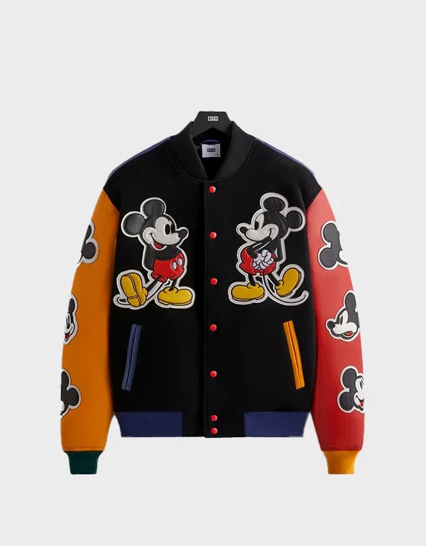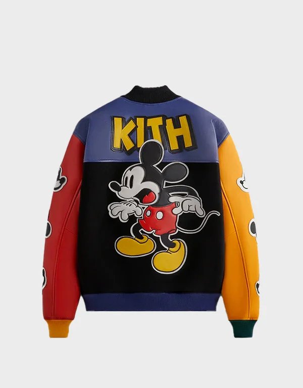 kith x disney mickey friends wool black varsity jacket