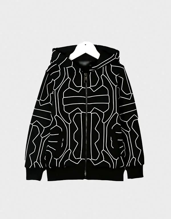 Featuring a full zip closure, an adjustable drawstring hood, and ribbed cuffs and hem, the hoodie ensures a snug, customizable fit. The front is decorated with striking graphic prints, showcasing the Houdini theme in tribute to Eminem’s powerful song. The intricate design captures the song’s essence, making it a must-have for fans who want to wear their love for Eminem proudly.