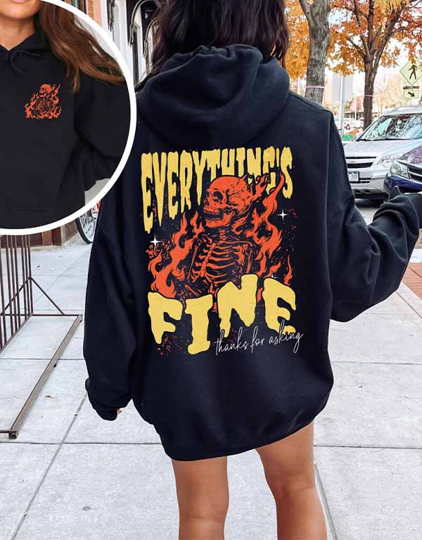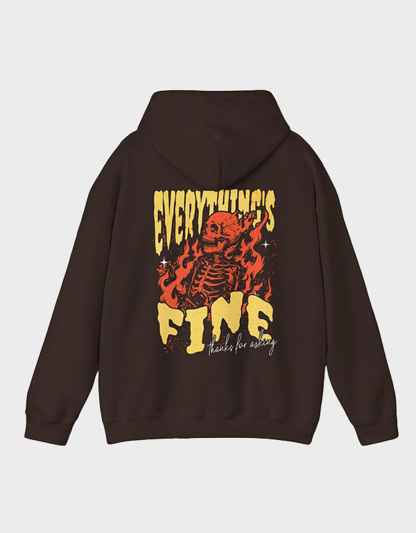Everything’s Fine Grunge Flaming Skeleton Hoodie