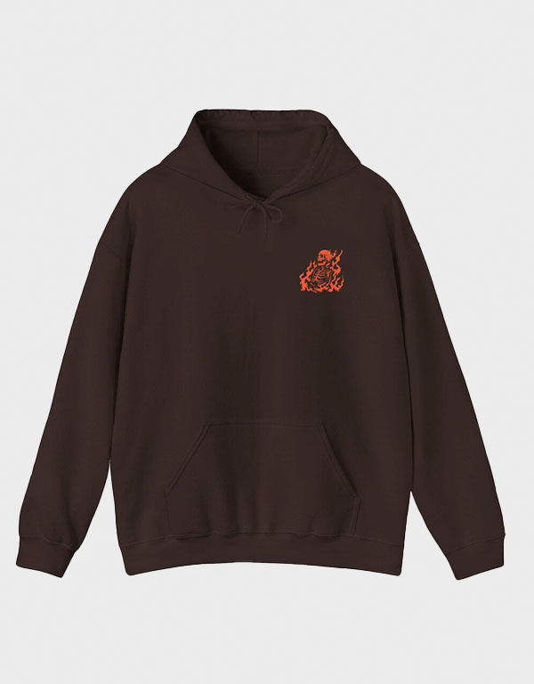 everything's fine grunge flaming skeleton brown hoodie