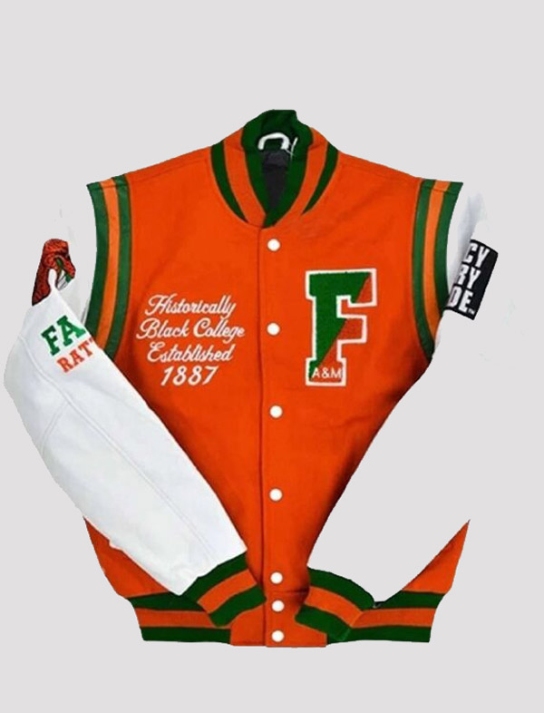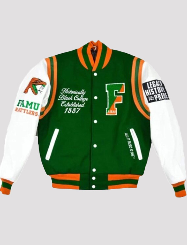 famu green white full snap jacket varsity