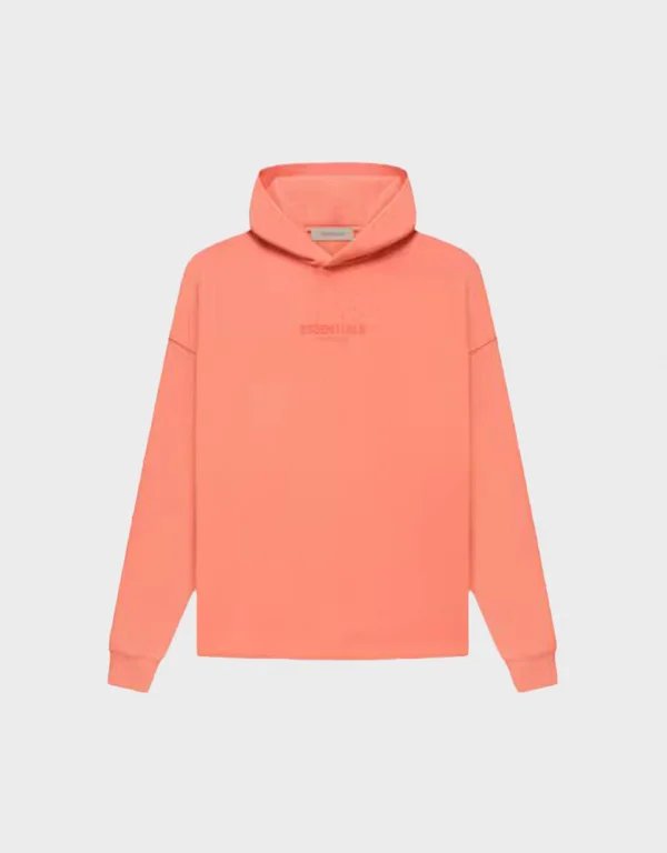 The hoodie’s standout feature is its signature FOG Essentials logo, subtly embroidered on the chest. This understated branding adds a touch of sophistication to the overall design. The coral colorway is a vibrant and versatile choice, perfect for both casual and elevated looks.