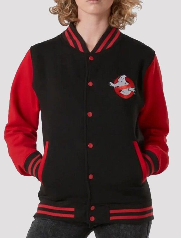 Ghostbusters Frozen Empire 2024 Red and Black Varsity Jacket