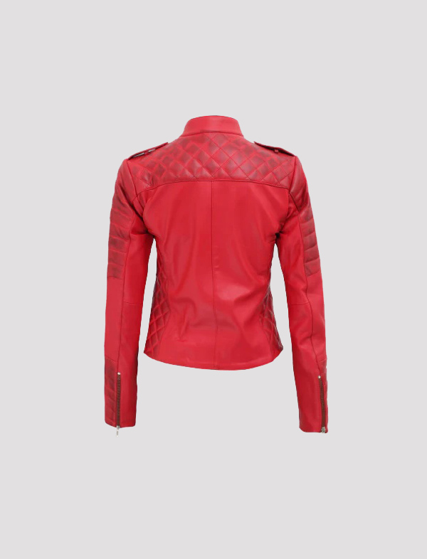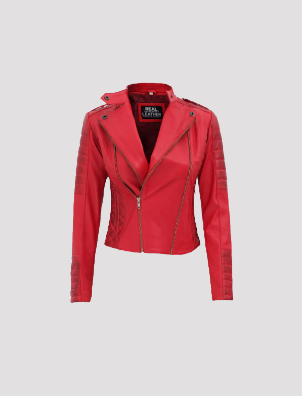 Home » Shop » Jannie Red Asymmetrical Padded Leather Jacket
