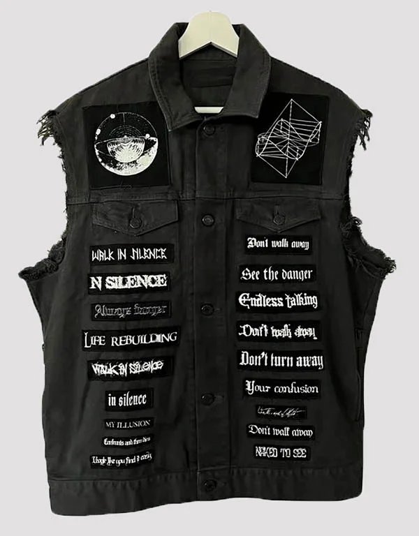 juice wrld denim patch black vests