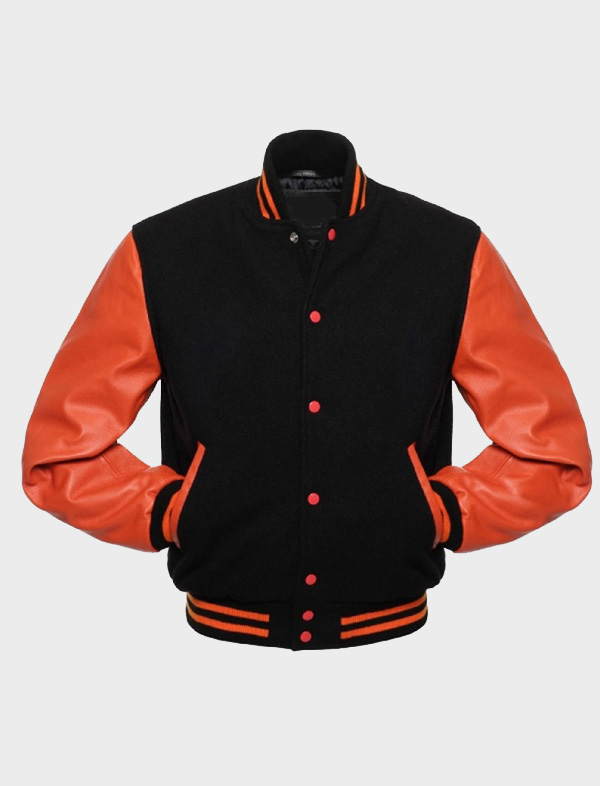 Men’s Black Varsity Jacket Leather Sleeves