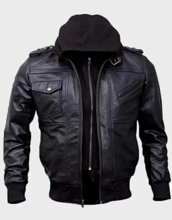 Home » Shop » Mens Bomber Black Hooded Leather Jacket