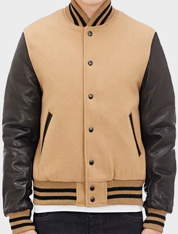 men’s varsity jacket with leather sleeves