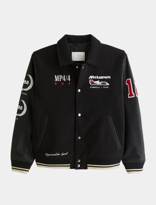 Men’s Formula 1 McLaren Varsity Bomber Jacket in Black