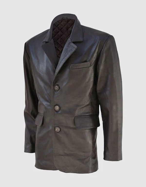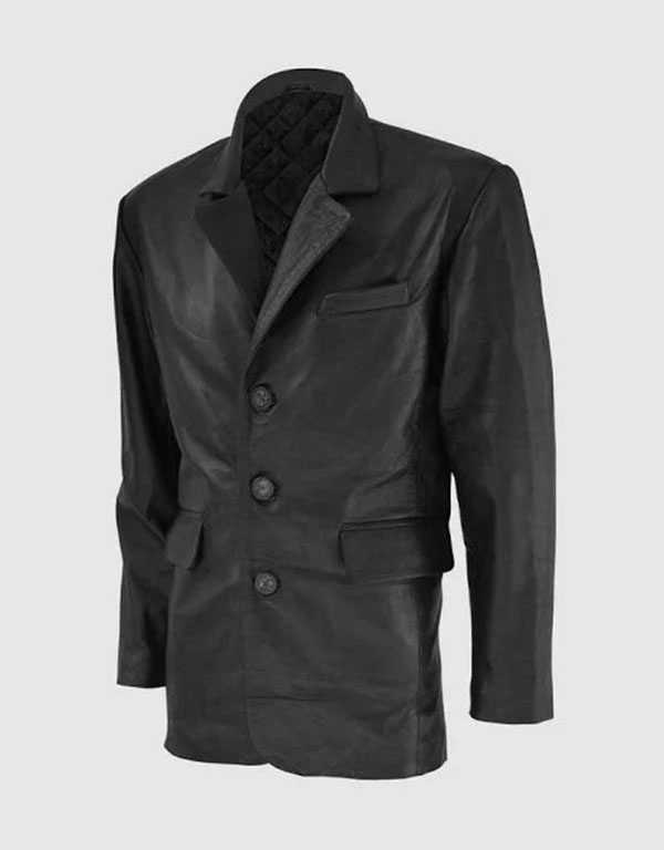 men's black leather blazer