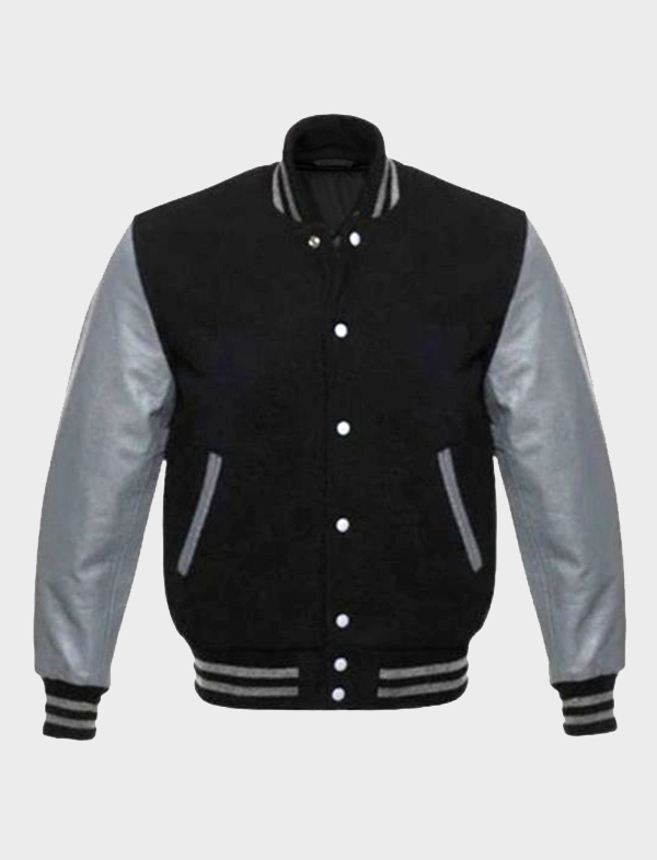 Men’s Varsity Jacket With Leather Sleeves – Black