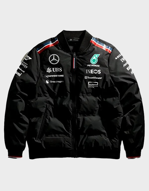 mercedes george 2024 russell black bomber jacket