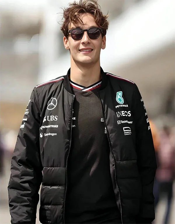 mercedes amg f1 george russell black bomber jacket