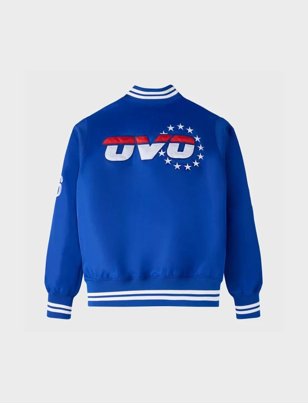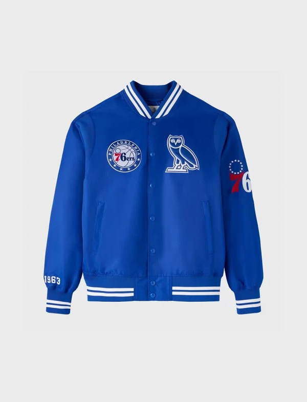October’s Very Own NBA Philadelphia 76ERS Satin Varsity Jacket – Blue