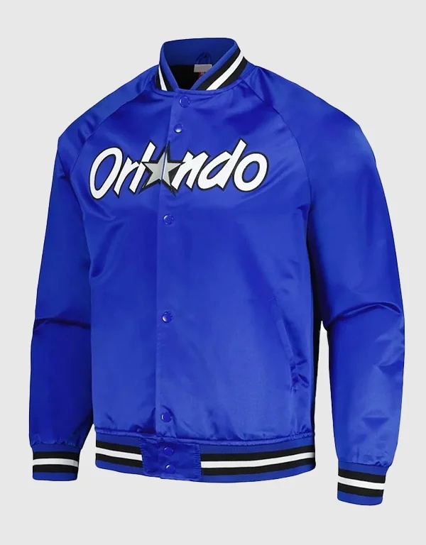orlando magic hardwood classics blue raglan full snap satin jacket