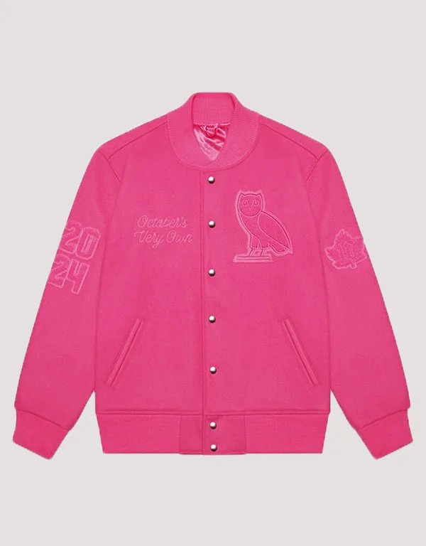 October’s Very Own OVO Valentine Pink Varsity Jacket
