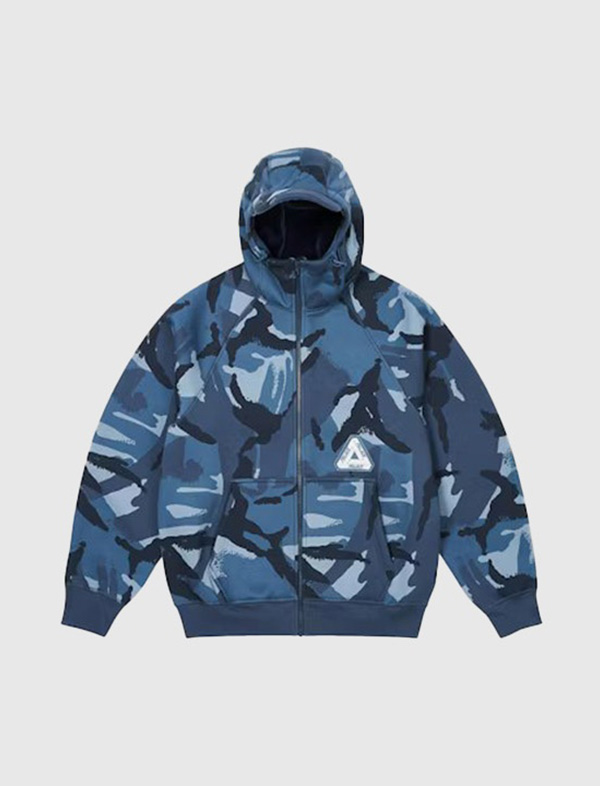 palace thermal bonded cap hoodie blue camo