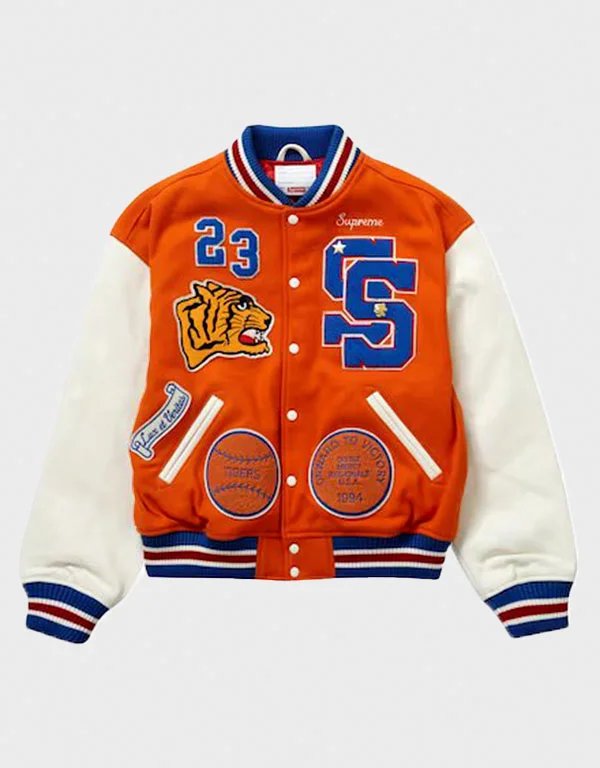 supreme tiger orange varsity jacket