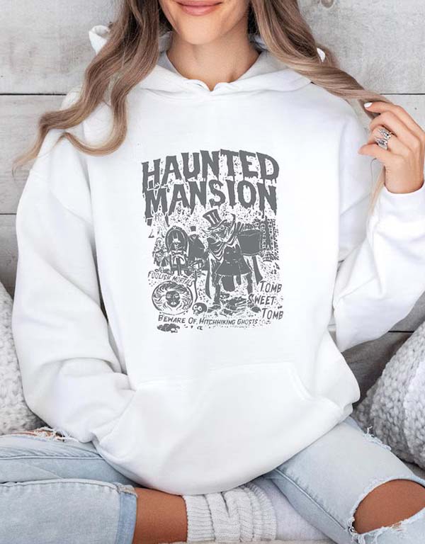 vintage halloween haunted mansion white hoodie