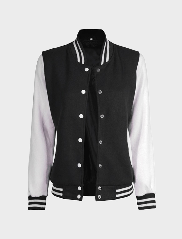 Home » Shop » Womens Full Sleeves Varsity Jacket in Black and White