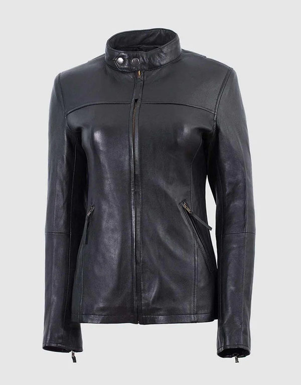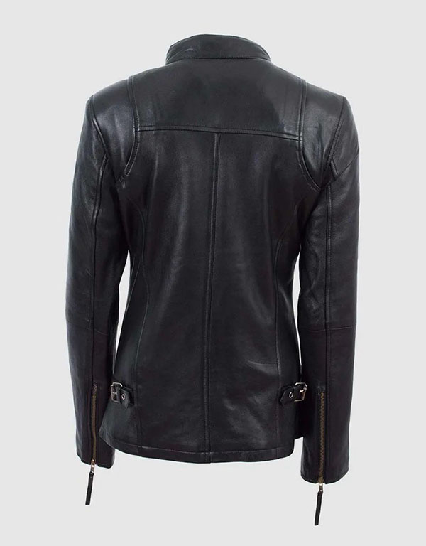 ladies slim black cowhide leather jacket