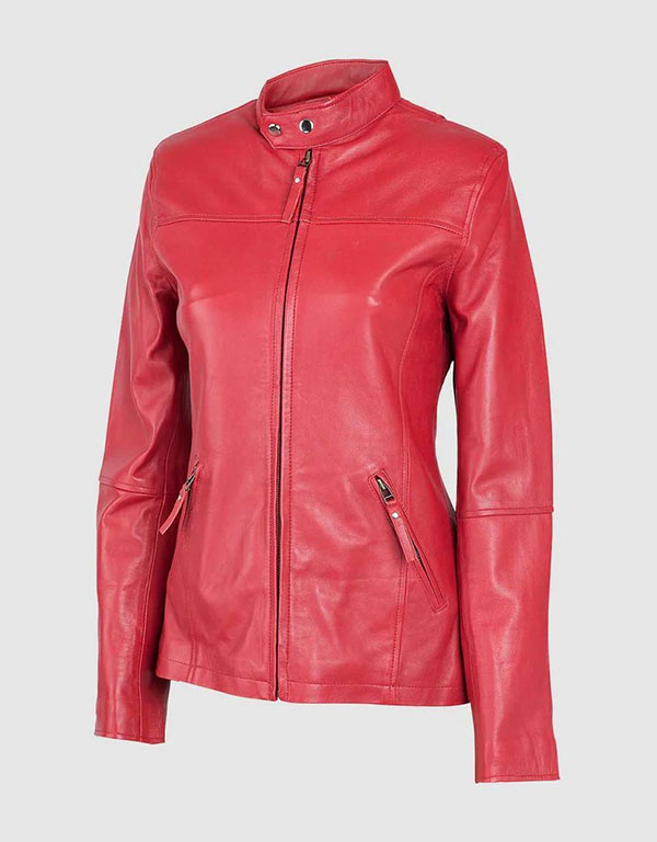 womens red lightweight leather jacket